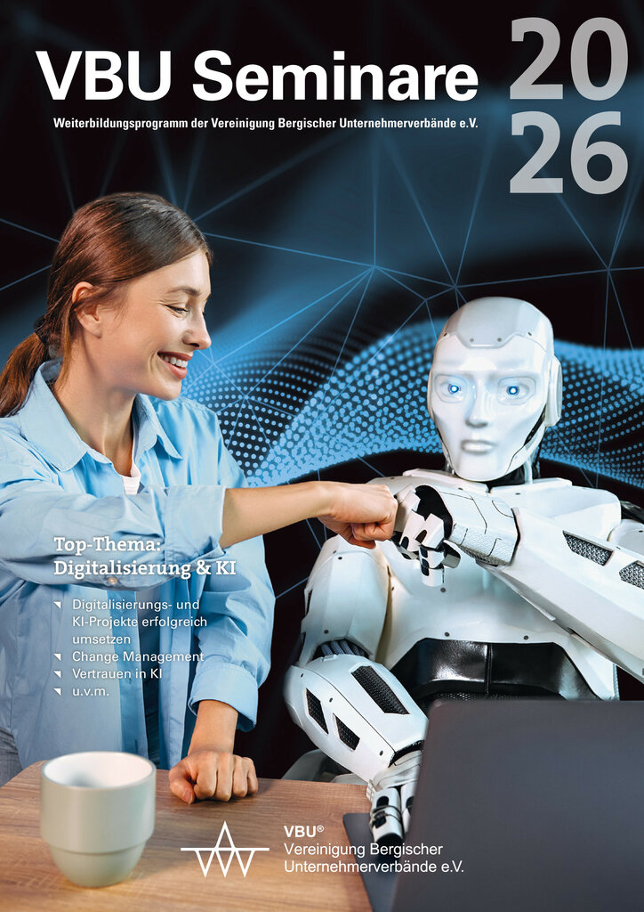 IMPRESSUM Impressum Herausgeber Vereinigung Bergischer Unternehmerverbände e.V. Wettinerstraße 11 42287 Wuppertal Tel. 02 02 / 25 80 - 0 info@vbu-net.de www.vbu-net.de Layout, Satz, Druckvorstufe headline:Werbeagentur GmbH www.headonline.de Fotonachweis wenn nicht anders angegeben: Vereinigung Bergischer Unternehmerverbände e.V. Ahmann & Schlieker GbR Seite 30 CTP Deutschland B.V. Seite 70 Pechschwarz GmbH Seiten 2, 3, 5, 8, 11, 21, 36, 38, 39, 40, 58, 68, 80, 82, 84, 85 www.freepik.com Seiten 10, 12, 49 www.istockphoto.com Seiten 3, 9, 15, 16, 19, 24, 26, 37, 38, 40, 43, 44, 47, 48, 54 – 57, 61, 62, 65, 68, 72 – 76, 79 Auflage 1.000 Exemplare Erscheinungsweise jährlich 85